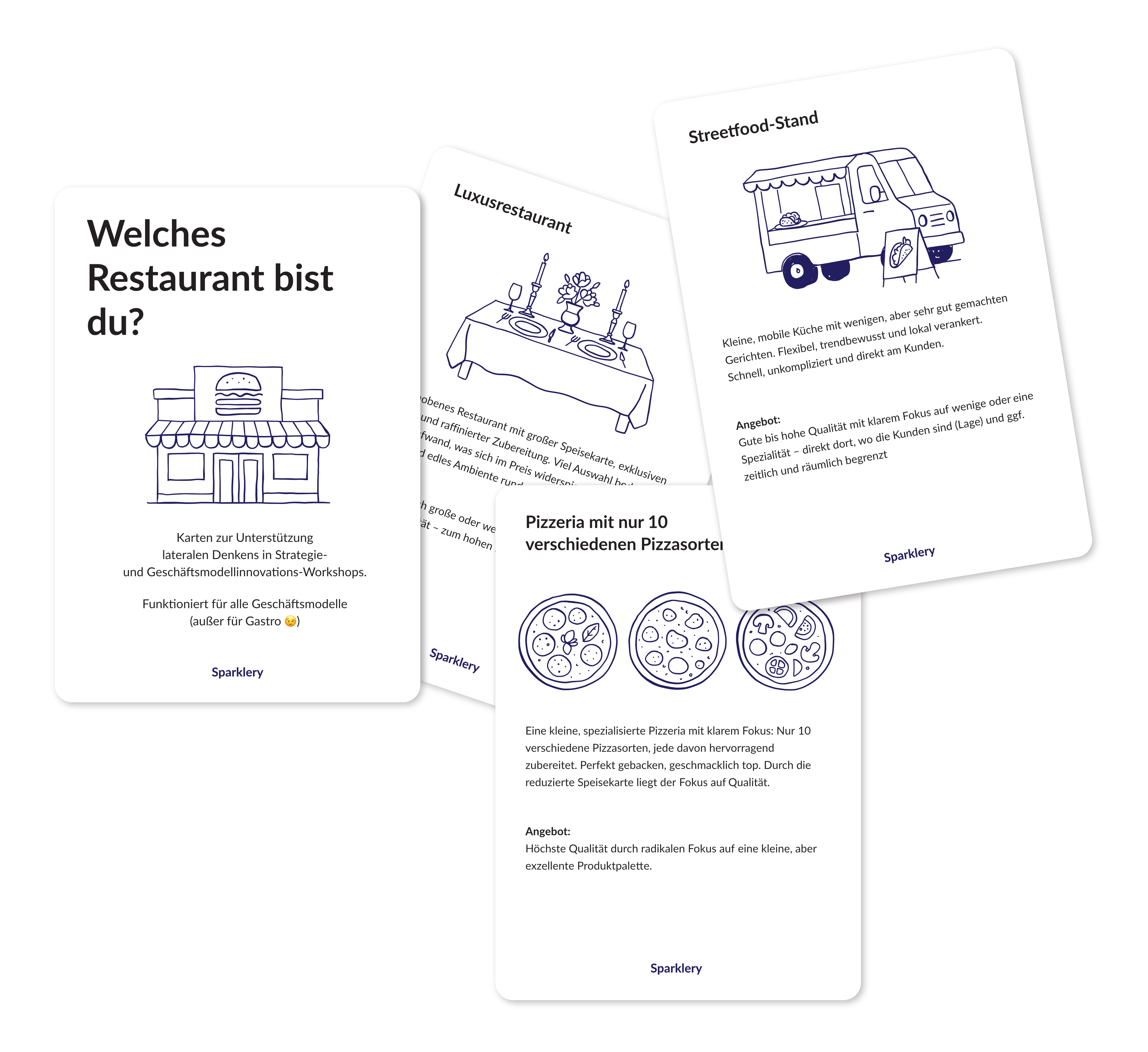Eine Methode zur Unterstützung lateralen Denkens in Strategie- und Geschäftsmodellinnovations-Workshops. Funktioniert für alle Geschäftsmodelle (außer für Gastro 😉) Hintergrund Manchmal ergibt es Sinn, einen Schritt